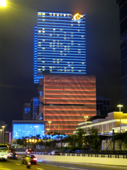 Casino Lisboa (lit. 'Lisbon Casino', Chinese: 葡京娛樂場) is a hotel casino in Sé, Macau, owned by the Sociedade de Turismo e Diversões de Macau (STDM). This three-storey complex was built in late 1960s.The original casino and the 12-storey round hotel tower were built in 1970 by Stanley Ho, Teddy Yip, Yip Hon and Henry Fok. A 270-room extension was added in 1991 for a total of 927 rooms. In 2006, another extension, the Grand Lisboa, was built next to the current complex. Therefore, a total of 2,362 rooms are in place in Hotel Lisboa as of 2010. This expansion was partly done in competition with the newly opened Wynn Macau, located right next to the original Casino Lisboa.
